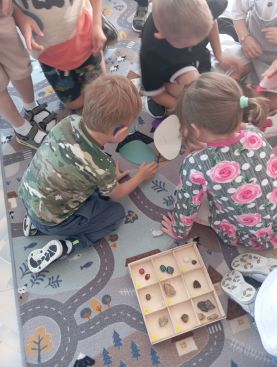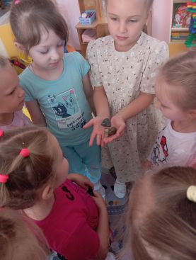 ДУК-1. В старшей группе №3 ДУК-1 прошел познавательный досуг «Камни под нашими ногами». За неделю до этого ребята рассматривали картинки с камнями, на участке разыскивали камни. А на досуге ребята отвечали на вопросы и называли знакомые камни, складывали узор, строили пирамидку и перемещались по «камням». В конце каждый ребёнок получил в подарок камень «златолит», который может послужить началом нового увлечения для кого-нибудь из детей.