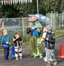 ДУК-4. Осень- прекрасное время года. Природа осенью полна неповторимым разнообразием цветов и красок. Сегодня наши дети встретились с красавицей Осенью, пройдя увлекательный квест. Целью было закрепление и уточнение познаний дошкольников об осени, используя технологию квеста на свежем воздухе, на территории детского сада. На своём пути ребята встречались с разными сказочными персонажами. Со старичком- лесовичком дети закрепили приметы осени, поиграли в игру "Да-нет". Показали ловкость и внимание с тетушкой-Слякотью. Выполнили задание Бабы-яги: собрали урожай картофеля, свёклы, кабачков, петрушки.
