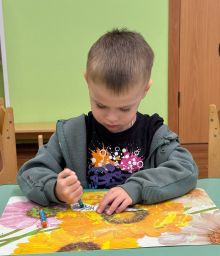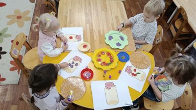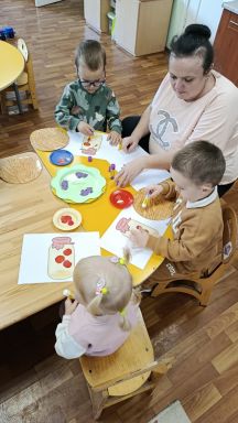 ДУК-4. Занятие по аппликации «Урожай в банке» в младше-средней группе напомнило детям о лете , когда на грядках и в садах созревают овощи и фрукты. Дети знают. что в овощах и фруктах много витаминов и полезных веществ. Воспитатель Ольга Викторовна предложила детям заняться домашним консервированием , чтобы зимой полакомиться вкусными заготовками. Каждый ребенок по своему желанию самостоятельно составлял свою композицию фруктовых компотов или засолки овощей. В конце занятия дети с огромным интересом рассматривали полученные результаты , и с гордостью выделяли не только свою работу, как лучшую, но и своих товарищей.