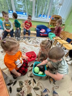Во второй младшей группе № 4 состоялся тематический досуг «Овощи на грядке». Ребята рассказали какие овощи знают и какие можно вырастить на грядке. После беседы дети выбрали понравившийся овощ и приступили к раскрашиванию. Во время игры в «Магазин», каждый малыш попробовал себя и в роли продавца, и в роли покупателя, соблюдая правила, о которых рассказал воспитатель. В завершении мероприятия мальчики и девочки сортировали овощи по цветам, закрепляя знания об их внешнем виде.