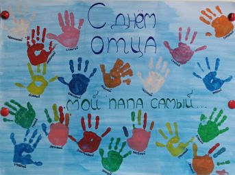 В нашей жизни очень много праздников, однако есть и совершенно особые, такие, от которых веет необычайной теплотой и нежностью - это «День отца», который отмечается в октябре. Быть хорошим отцом - самая ответственная и нужная работа в жизни мужчины. Стать примером для сына и добрым волшебником для дочери. Научить, рассказать, защитить, объяснить и сделать всё это с любовью и терпением - такое может только папа. В преддверии праздника на занятии по аппликации ребята разновозрастной группы с большой теплотой изготовили своими руками поздравительные открытки и плакат «Мой папа самый…».