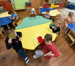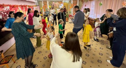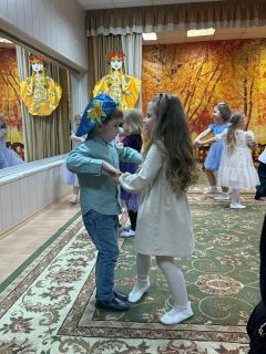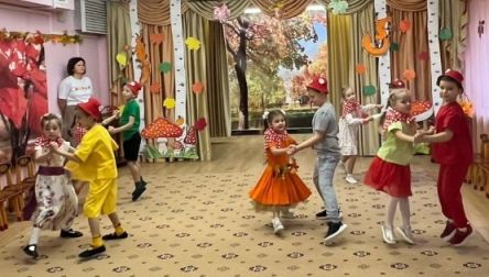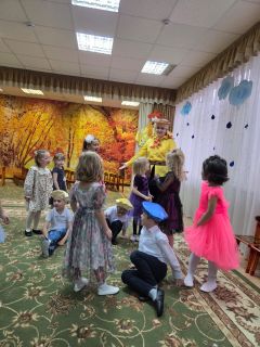 В разновозрастной группе прошла семейно-музыкальная гостиная "Волшебные краски Осени". Дети вместе с родителями выясняли, какая краска главнее и важнее в украшении осенней природы. Веселые песни, танцы и игры помогли решить, что все краски нужны и хороши.