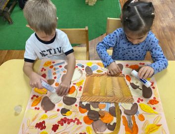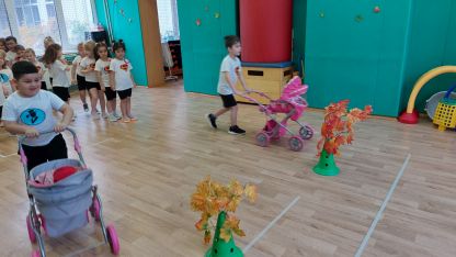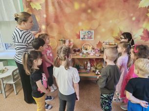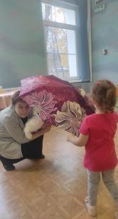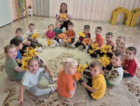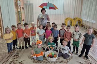 ДУК-2. В наш детский садик постучалась Осень. Воспитанники второй младшей группы № 4 отправились в гости к Ёжику, чтобы помочь собрать урожай. Девочки и мальчики преодолели различные преграды в лесу и прыгали через лужи. По дороге дети встретили Лисичку и Медвежонка, с которыми поиграли в веселую игру с осенними листочками, а также прятались от дождика под волшебным зонтом. Добравшись да домика Ёжика, ребята помогли ему собрать фрукты и овощи в большую корзину, и теперь они уверены, что зверята не будут голодными и смогут пережить зиму. Прогулка в осенний лес прошло бодро и весело.