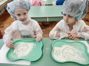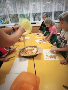 Тематическая неделя «Хлеб всему голова» прошла в ДУК-4 в подготовительной к школе группе. Дети знакомились с тем, как выращивают хлеб, как он «приходит» к нам на стол. Рассматривали зерна пшеницы, проводили эксперименты с мукой. Просмотрели презентацию о выращивании зерновых культур. Проследили путь от зёрнышка пшеницы до вкусного румяного каравая на столе, узнали много нового о труде земледельцев. Рассматривали картины «Откуда, берется хлеб», «Какой бывает хлеб», «Из чего делают хлеб», прочитали сказки: «Колобок», «Крылатый, мохнатый, масленый». В дидактических играх «Угадайка», «Что общего и чем отличаются?», «Разложи блинчики», «Расставь правильно» закрепили полученные знания. На пищеблоке во время экскурсии дети наблюдали, как шеф-повар замешивает дрожжевое тесто для булочек . А в конце недели ребята показали малышам театрализованную сказку «Колосок».