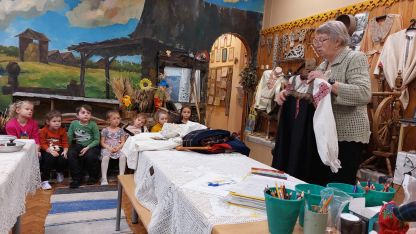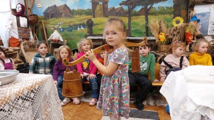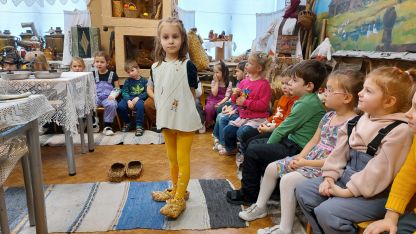 ДУК-3. Воспитанники старшей группы № 8 посетили школьный музей русского быта "Россиянка". Дети узнали, во что и как раньше одевали младенцев, какую одежду и обувь носили дети и взрослые, из чего их делали и как украшали, а также смогли примерить её. Руководитель музея Ирина Михайловна рассказала ребятам, как "рубашка в поле выросла", показала процесс изготовления ткани. Дети узнали много нового и интересного.