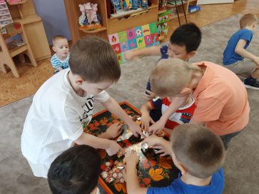 В разновозрастной группе № 6 состоялось тематическое занятие, во время которого дети вспомнили историю возникновения с праздника «День народного единства», расширили представление о России, как о многонациональном государстве, поговорили о дружеских взаимоотношениях в детском коллективе. Ребята исполнили стихотворение В. Степанова «Что мы родиной зовём», собрались в круг под «Родная песенка» и приняли участие в динамичной игре «Мы богатыри».