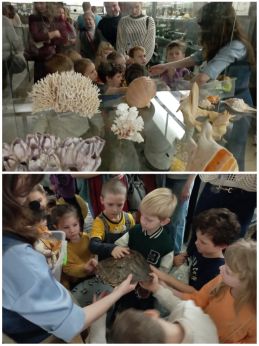 Ребята разновозрастной группы № 6 в выходной день посетили Научно-исследовательский Зоологический музей МГУ им. М.В. Ломоносова и приняли участие в интерактивном занятии «Путешествие к морским звездам». Дети полюбовались кораллами и морскими губками, рассмотрели и подержали их в руках, восхитились разнообразием моллюсков и их раковин, узнали как растут жемчужины, какими бывают морские звезды и многое другое.