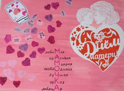 ДУК-2. В преддверии самого светлого и доброго праздника, дня Матери, воспитанники подготовительной группы 6 подготовили подарки для своих мам. С помощью воспитателя дети с удовольствием изготовили плакат с сердечками. Сюрпризом стали нарисованные открытки с портретом мамы, выполненные ребятами с добротой и любовью.