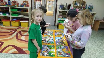 ДУК-4. Педагоги ДУК-4 систематически включают в разнообразные виды практик задания по закреплению навыков ориентировки в пространстве. В средней-младшей группе дети во время утреннего круга играют с игрушками в игру « Прятки», правильно определяя место «под стульчиком», «за стульчиком», «перед стульчиком» и т. д. В разновозрастной группе проводят игровые занятия с использованием игр малой подвижности. Сюрпризный момент - письмо от Деда Мороза, в котором загадка и дети по плану-схеме ищут отгадку. Последовательно выполняя задания: дети здороваются друг с другом разными частями тела, что вызывает взрыв положительных эмоций, проходя по запутанному лабиринту, определяют местоположение Медведей. Вместе с Колобком ищут лесных жителей – ориентировка на листе-планшете. Под задорную музыкальную игру ребята с игрушкой Червячком выполняют веселые упражнения на ориентировку игрушки в пространстве. Успеваемость обучения детей в школе во многом зависит от их свободного ориентирования в пространстве и умению активно использовать пространственные понятия на практике.