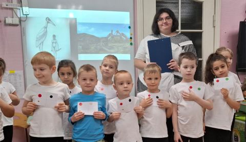 Путешествие в мезозойскую эру совершили дети подготовительной группы. Ребята захотели узнать, когда появились птицы и кто был их предком. Оказывается, в те времена обитали не только динозавры, но и необычные существа археоптериксы. Они больше всего напоминают современных птиц. Их тело было покрыто перьями, а длинные лапы были подобны птичьим. Интересные тайны образа жизни древних птиц - эпиорнис, дроф, моа, гагарка, а также древнего пингвина, которые обитали на земле более 40 миллионов лет назад, открылись детям. Пингвины вели такой же образ жизни на льдинах, питались рыбой, обитали вблизи экватора. Ребятам понравилось путешествовать, а такое познавательное занятие провела ученица школы, наша бывшая воспитанница.
