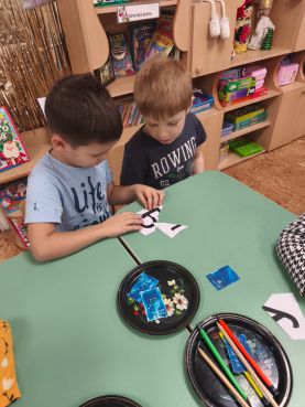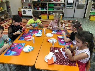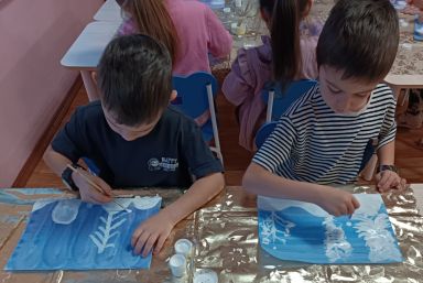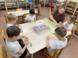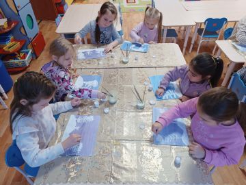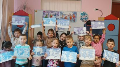 В разновозрастной группе 6 дети рисовали зимний пейзаж в нетрадиционной технике «Рисование мятой бумагой». Это очень интересная и необычная техника рисования. Необычным, интересным и увлекательным становится даже процесс подготовки к занятию. Приготовление бумажных комочков — увлекательное действие, и с ним дети легко и с удовольствием справляются сами. Такое нетрадиционное рисование доставляет детям множество положительных эмоций.
