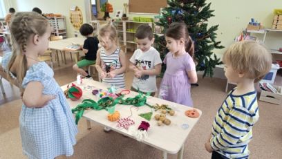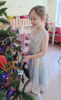 В разновозрастной группе прошло интегрированное занятие "Здравствуй, ёлочка!". Для встречи с ёлочкой дети сделали гирлянды из флажков. Также каждый ребенок подготовил и принёс елочную игрушку, которую повесил на ветку. Группу украсили снежными декорациями, сделанными своими руками. Занятие завершилось веселым хороводом вокруг наряженной красавицы Ёлки.