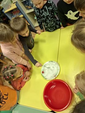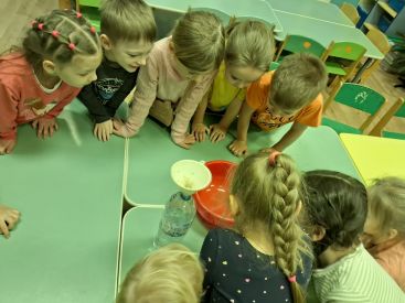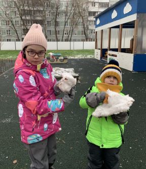 ДУК-3. С началом зимы ребята из старшей группы стали ждать снег! И только в середине декабря появилась любимая, зимняя, детская забава. В этот день дети гуляли, строили снеговиков, крепости, снежки! А вечером ребята провели эксперимент. Они грели снег в ладошках, топили снег в теплой воде, очищали растявший снег от грязи. И увидели они, что на фильтре остались семена и остатки земли, которые на снегу не были видны и сами решили, что больше снег они есть не будут. В заключение дня ребята с увлечением станцевали танец "Лепим, лепим снежный ком". День прошел весело и познавательно!