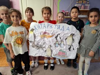 В подготовительной группе продолжаются интересные путешествия по России. На этот раз ребята оказались на огромном материке Антарктиде, который похож на ледяную пустыню. Только благодаря ледоколу, можно добраться до полярных научных станций, где круглогодично работают ученые, изучающие наш Крайний Север, его богатый животный мир, климат, месторождения полезных ископаемых. Чтобы понять, как животные приспособились жить в таких суровых условиях, были проведены опыты. В продуктивной деятельности ребята выполнили коллективную работу « Животный мир и вечная мерзлота Антарктиды» в технике смятия бумаги.