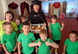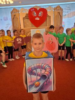 ДУК-4. Тематический досуг «Путешествие по стране Пищеварения» в подготовительной группе стал завершающим мероприятием в проекте «Пищеварение. Что это значит?». Ведущий воспитатель Любовь Дмитриевна появилась в образе Профессора Здоровейкина. Профессор Здоровейкин приглашает детей в увлекательное путешествие, целью которого человеческий организм. Прежде чем отправиться в путешествие все дети должны превратиться в полезные и вредные продукты маленького размера. На пути встречается большая Красная коробка «рот». Дети соревнуются в определении полезной и вредной пищи. На презентации «Путь бутерброда», вспомнили какие органы пищеварения встречает пища на своем пути и выполнили игровое задание «Собери путь-дорогу пищи», соревновались в подвижной игре «Собери витамины», активно поучаствовали в экспериментальной деятельности «Поможем желудку». Организация познавательно-исследовательской деятельности дает возможность познакомить детей с окружающим миром и получить достоверные знания о нем.