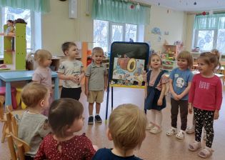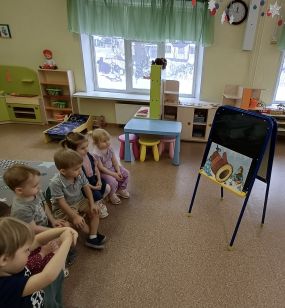 ДУК-5. Дети очень любят сказки. Воспитанники ясельной группы с удовольствием приняли участие в показе сказки «Руковичка» с помощью магнитной доски. Познакомившись с героями произведения, ребята радовались, грустили и сопереживали вместе с ними. Малыши запомнили сюжет, поняли как важны дружба и взаимопомощь, а также пытались имитировать звуки животных.