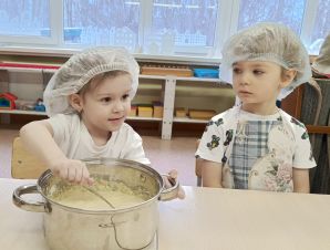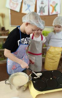 Масленица - один из самых любимых и ожидаемых детьми праздников. По традиции нашей группы, дети всю неделю пекут блины. И если в первый день масленичной недели помощь воспитателей необходима, то к третьему дню дети уверенно самостоятельно замешивают тесто и выпекают блинчики ровной формы, которым позавидует любая хозяйка. Дегустация обычно сопровождается масленичные песнями и играми.
